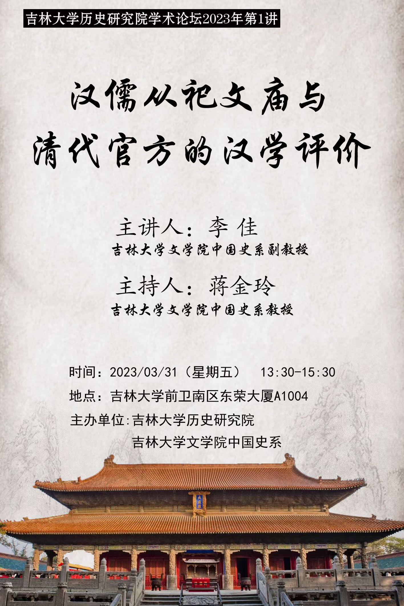 讲座题目:汉儒从祀文庙与清代官方的汉学评价