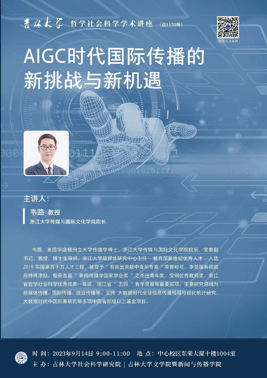 讲座题目:AIGC时代国际传播的新挑战与新机遇