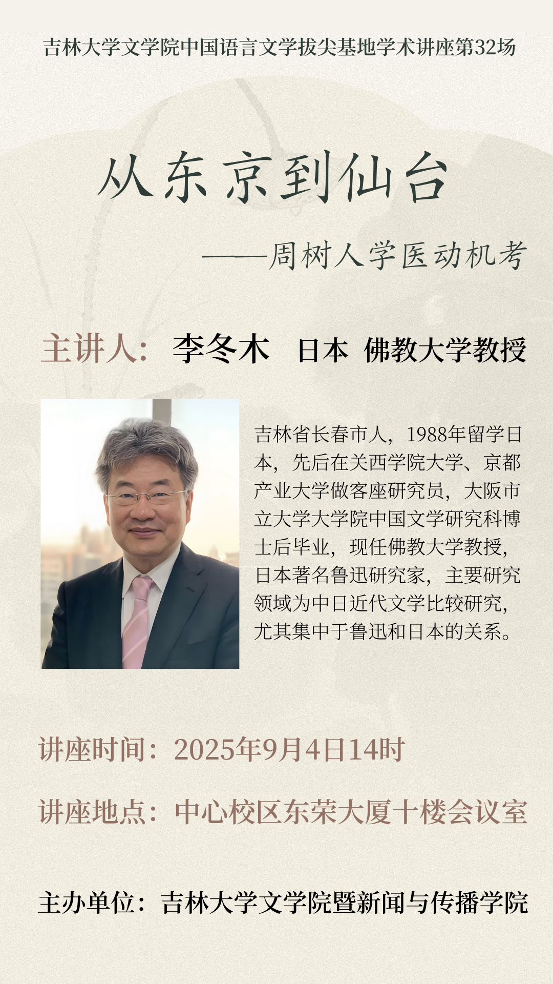 球探网页版中国语言文学拔尖基地学术讲座第32场 :从东京到仙台——周树人学医动机考