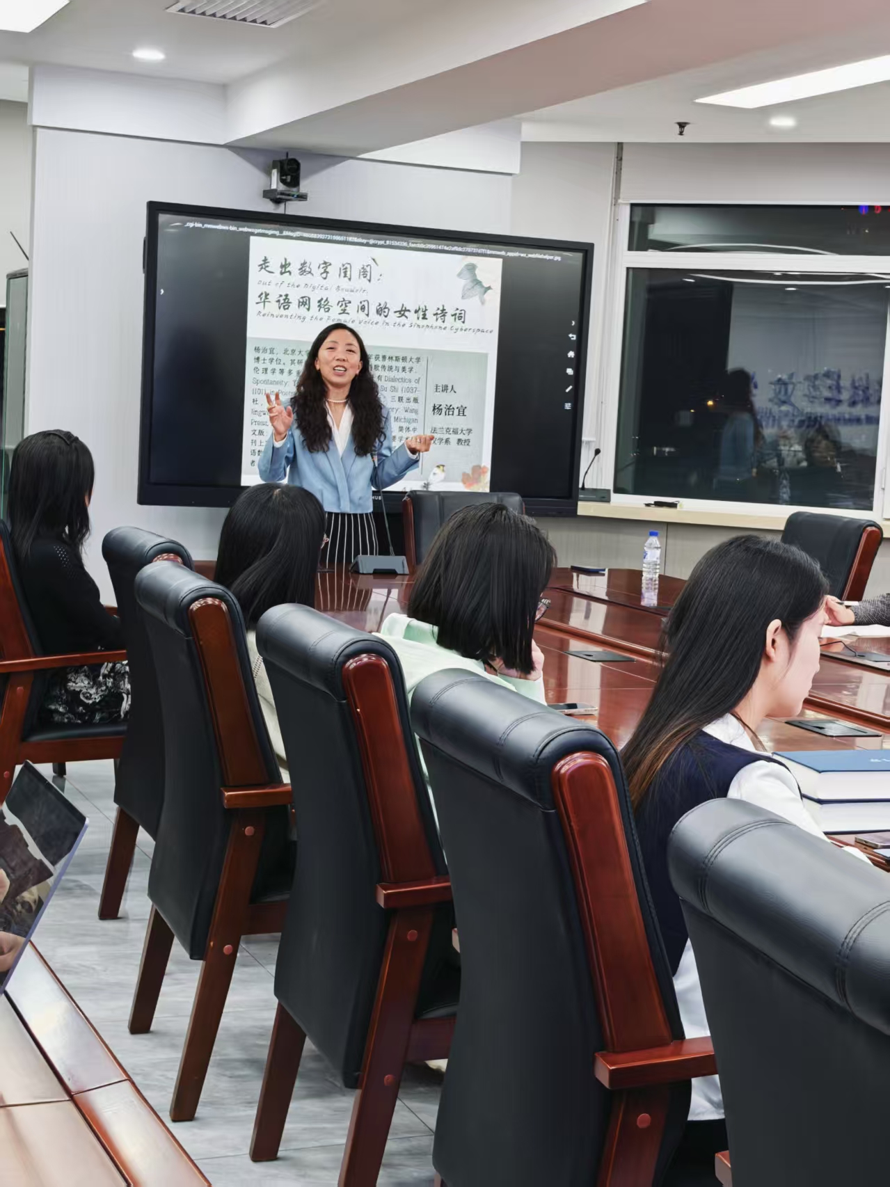 最后,在“拓宽女性声音的表达边界”部分,杨治宜教授以添雪斋“闺阁之外”的诗词作品为例,展现了女诗人、词人在数字时代冲破旧体诗词的闺阁束缚、打破算法壁垒,发出属于女性的时代心声的实践。