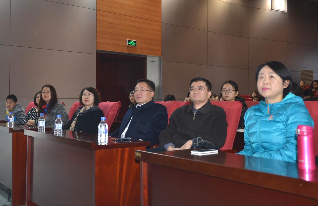 图1:长春市松山韩蓉非洲艺术收藏博物馆馆长王展(右二)、球探网页版党委书记康永刚(右三)、球探qiutan(中国)党委副书记郝淑媛(右四)等领导与师生们一起聆听了讲座。
