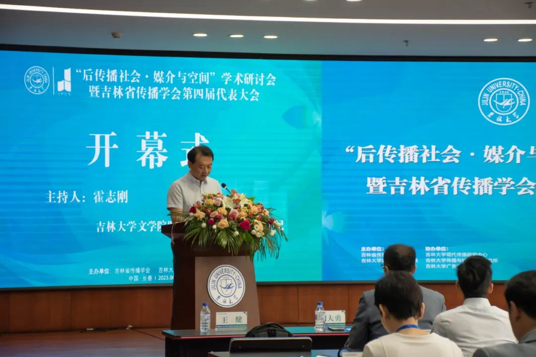 624日,“后传播社会·媒介与空间”学术研讨会暨吉林省传播学会第四届代表大会在吉林大学鼎新图书馆4楼多功能厅成功召开,会议由吉林省传播学会联合吉林大学新闻与传播学院主办,由吉林大学现代传播研究中心、吉林大学传播与社会治理研究所、吉林大学广告文化研究中心协办。来自复旦大学、北京师范大学、同济大学、华中科技大学、吉林大学、暨南大学、东北师范大学等30多所高校和多家媒体单位120余位专家学者参加了此次学术研讨会。开幕式由球探网页版党委书记霍志刚主持,吉林省委宣传部新闻处处长马研,吉林省社科联学会工作处处长全一,吉林大学党委组织部部长、社会科学研究院院长姚毓春教授等领导出席开幕式。厦门理工大学原副校长、教育部新闻传播学类教指委委员、厦门大学新闻传播学院博士生导师赵振祥教授,教育部新闻传播学类教指委委员、延边大学朝汉球探qiutan(中国)新闻系李逢雨教授,吉林动画学院副董事长刘欣教授,暨南大学新闻与传播学院副院长、博士生导师、“国家百千万人才工程”入选者、国家有突出贡献中青年专家、国家社科基金重大项目首席专家曾一果教授,教育部人文社科重点研究基地“复旦大学信息与传播研究中心”副主任、复旦大学新闻学院博士生导师潘霁教授,北京师范大学新闻传播学院副院长、博士生导师周敏教授,华中科技大学新闻与信息传播学院博士生导师、袁艳教授,同济大学艺术与传媒学院博士生导师、王冬冬教授;宁波工程学院人文与艺术学院副院长、肖荣春教授等嘉宾出席了开幕式。