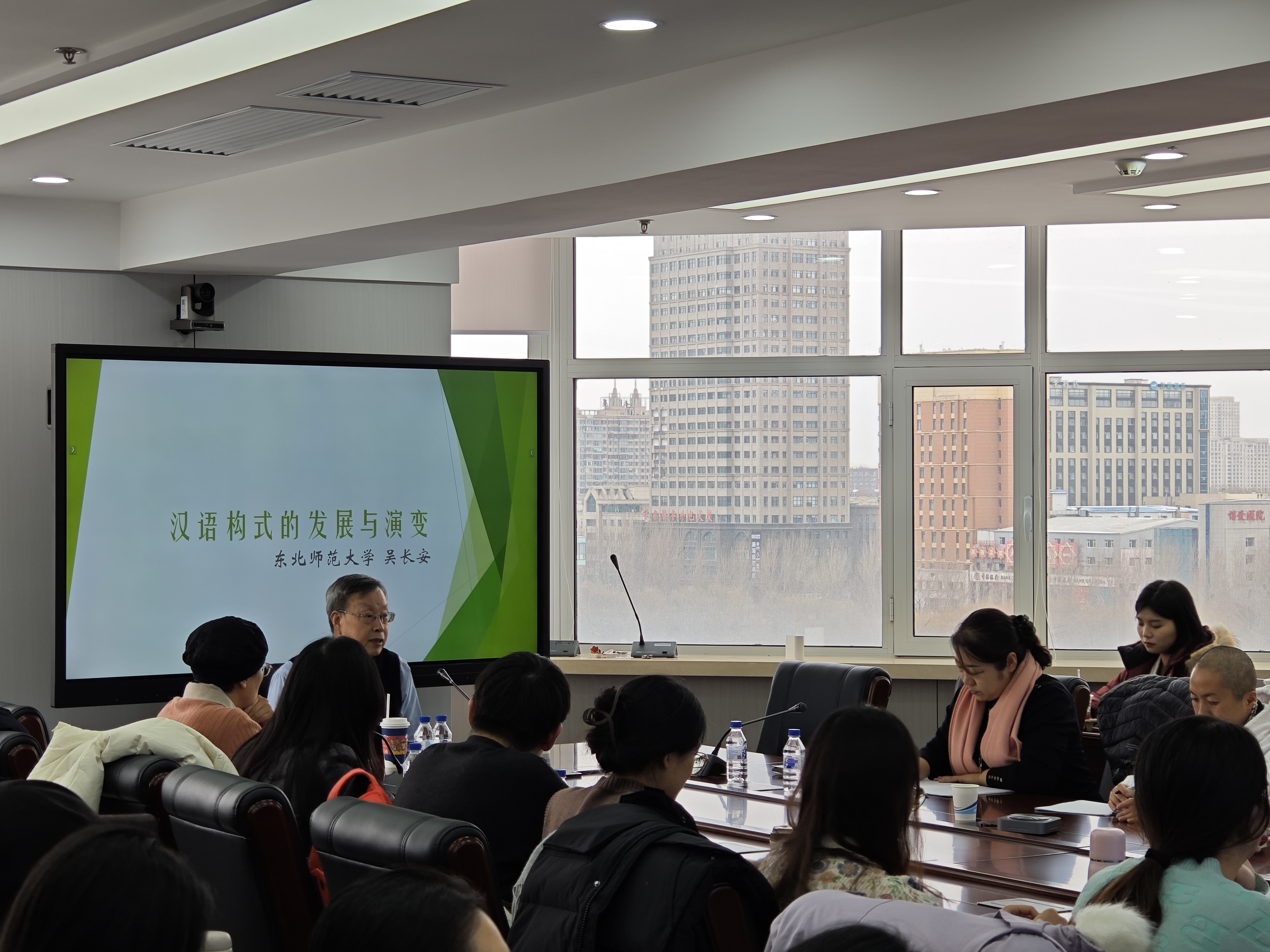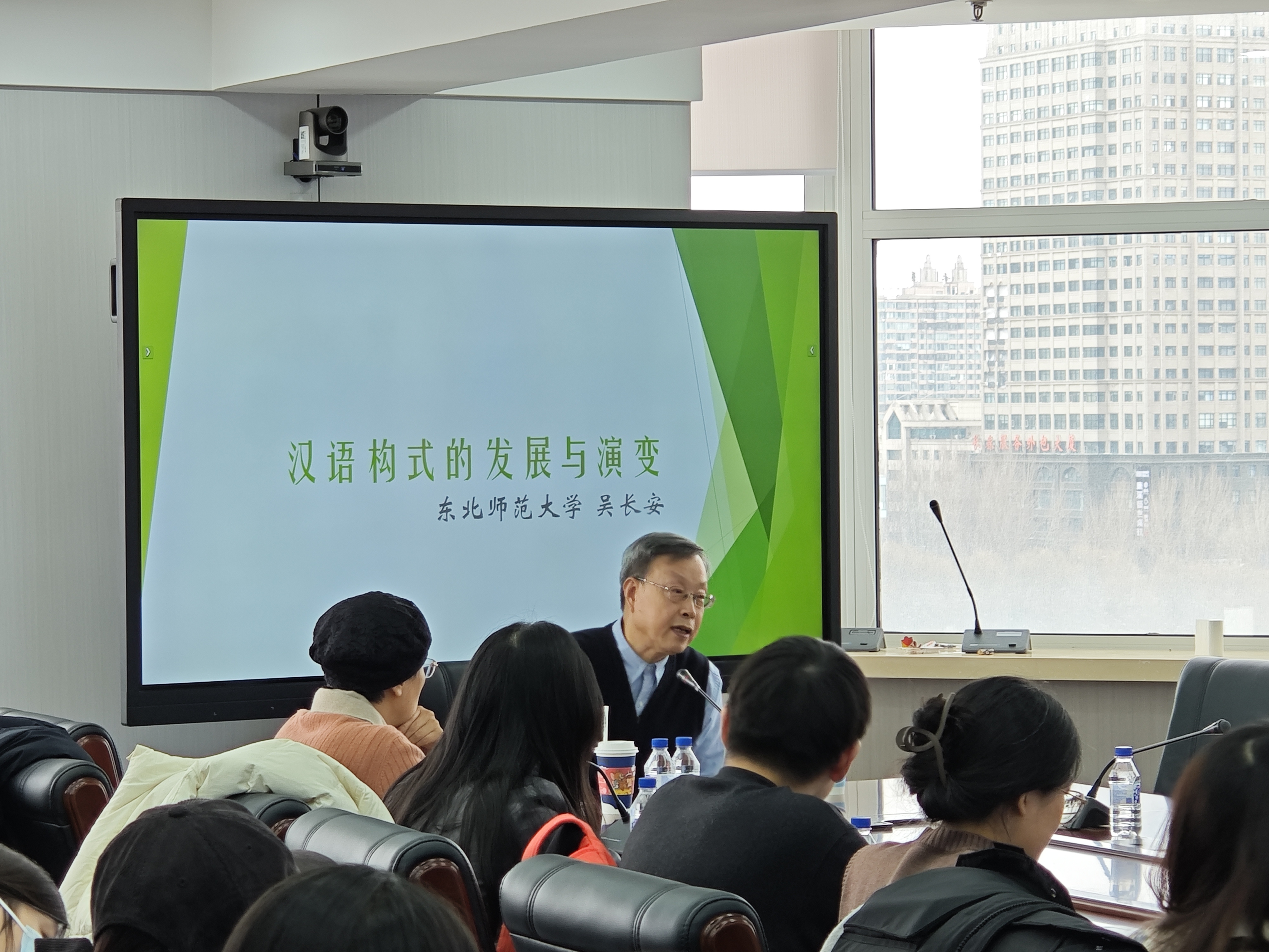 11月27日,一场关于汉语语言学领域的深度探讨在我院如期举行,主题为《汉语构式的发展与演变》。此次讲座有幸邀请到了东北师范大学球探qiutan(中国)的知名学者、博士生导师吴长安教授,为与会师生带来了一场精彩纷呈的学术盛宴。