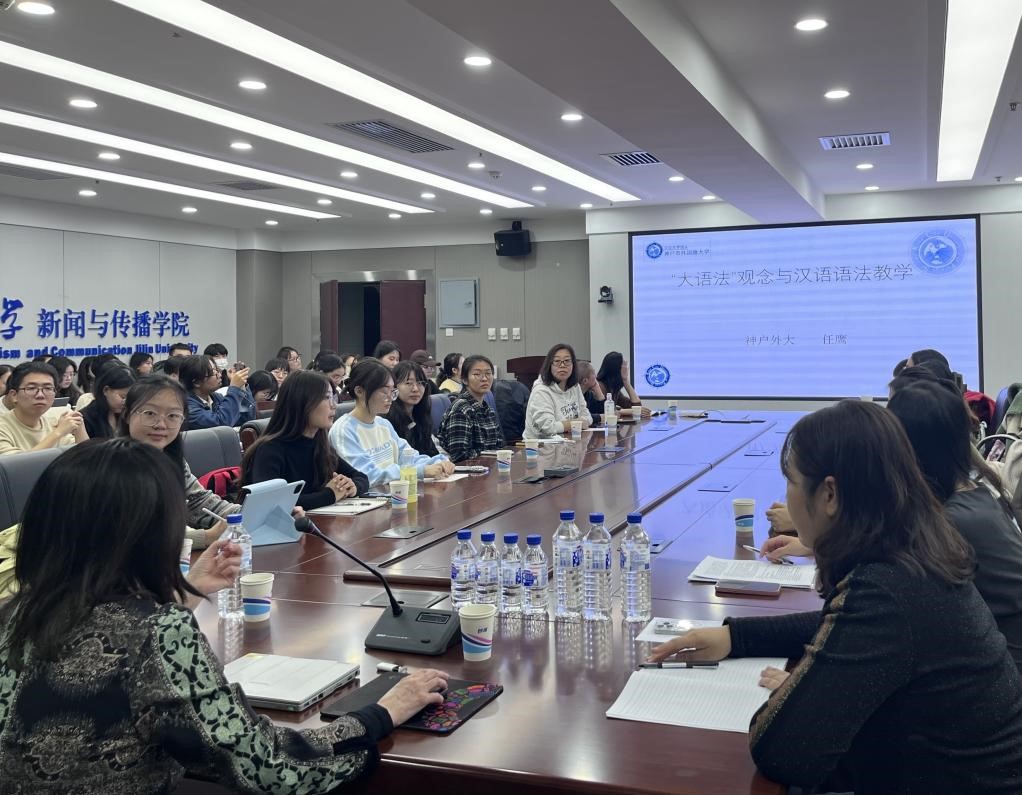 2024年11月8日,日本神户市外国语大学中文系教授、博士生导师任鹰教授在东荣大厦十楼会议室为我院师生带来题为《“大语法”观念与汉语语法教学》的学术讲座。讲座由周莉教授主持,由刘艳茹教授进行总结评议,球探qiutan(中国)的王倩老师、王岩老师、李剑影老师和张苗苗老师等师生共同参加讲座。