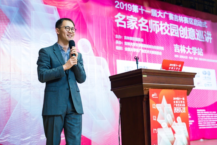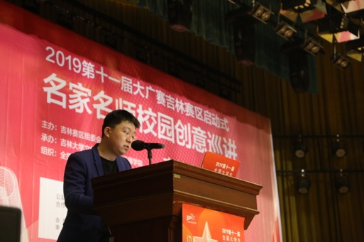 2019年4月23号下午,第十一届全国大学生广告艺术大赛吉林赛区启动仪式暨名家名师校园创意巡讲活动在吉林大学新闻与传播学院演播厅隆重举行。本次活动由大广赛组委会和吉林赛区组委会主办,吉林大学新闻与传播学院承办。吉林大学党委宣传部副部长王巍,球探网页版暨新闻与传播学院党委书记康永刚,吉林省广告协会会长刘丽,大广赛吉林赛区组委会秘书长、吉林大学传播学系主任黄也平教授,中央美术学院设计学院博士生导师肖勇教授,一汽-大众销售有限责任公司东北区销售事业部市场与公关总监韩文鑫等嘉宾参加了启动仪式。