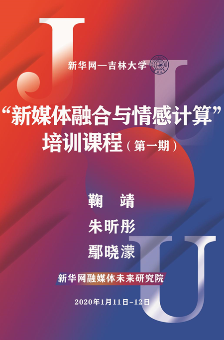2020111日至12日由吉林大学新闻与传播学院和新华网融媒体未来研究院共同举办的“新媒体融合与情感计算”培训课程(第一期)在吉林大学新闻传播与广电艺术实验教学中心圆满完成。经学院领导批准与规划,本次培训由吉林大学新闻与传播学院副院长鞠惠冰教授主持,特邀请新华网融媒体未来研究院鞠靖副院长、朱欣彤研究员和鄢晓濛研究员作为课程主讲嘉宾。吉林大学新闻与传播学院副院长刘鸣筝教授、孔朝蓬教授以及各专业教师代表参与了课程培训,各专业研究生代表积极配合完成了培训相关的志愿者工作。