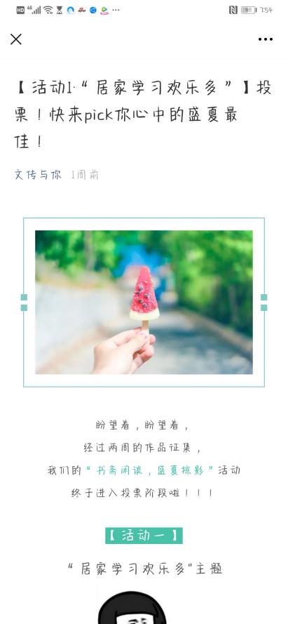 该活动以“生活记录”为主题,围绕“发现生活之美”与“居家学习欢乐多”两个大类,向同学们征集图文投稿和视频投稿。同时活动负责人会把优秀的作品发布在球探qiutan(中国)抖音账号上面,最后结合点赞数、投票数与老师评分进行评选。最终决出“盛夏掠影”活动的一二三等奖并颁发优质证书与二十小时的志愿时长。本次活动极大地激发了同学们的创作热情,在积极踊跃的参与氛围中,参赛同学通过短视频拍摄和趣味学习视频创作,创造了居家学习与自主学习的新动力,再次发现与重温家庭的欢乐与温情,挖掘并记录生活中的点滴美好。