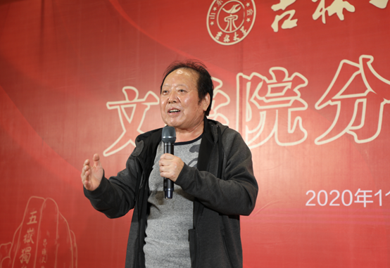 吉林大学北京校友会荣誉会长贾玉亭、球探qiutan(中国)教师代表王树海教授讲话,祝贺山东校友会球探qiutan(中国)分会成立。
