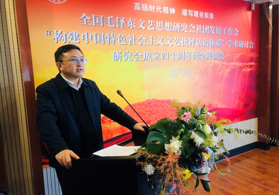 吉林大学副校长蔡立东教授、吉林大学党委宣传部部长韩喜平教授、球探网页版暨新闻与传播学院院长徐正考教授、吉林大学原校长、哲学社会科学资深教授、研究会名誉会长刘中树教授分别致辞,对全国毛泽东文艺思想研究会坚持以马克思列宁主义、毛泽东思想、邓小平理论、“三个代表”重要思想、科学发展观、习近平新时代中国特色社会主义思想为指导,坚持文艺为人民服务、为社会主义服务和“百花齐放、百家争鸣”方针,推动马克思主义文艺理论中国化、构建中国特色社会主义文艺理论做出的贡献予以肯定,对研究会坚持正确导向、内部管理规范、组织机制健全、学术水平较高、社会效益明显,意识形态工作影响突出的社团发展与建设成绩予以总结,并提出了新时代社团发展工作的要求和希望,不忘初心、牢记使命、恪守宗旨、攀登高峰,立足长远、行稳致远、瞩目未来、建设当下。