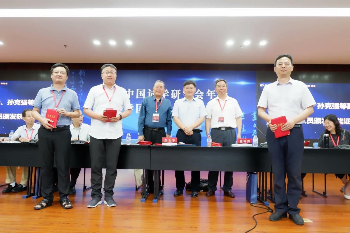 7月18日下午的闭幕式由内蒙古民族大学文学与新闻传播学院院长郝青云教授主持。首先,三个小组的汇报人分别代表本组汇报了两天的研讨成果;彭玉平教授对本次词学会进行了全面而精彩的学术总结,彭教授指出,词学研究应注意理论与文献的结合、关注研究对象的特殊性、秉持客观与理性的精神、遵循逻辑与体系的认知、在自然明晰地表达学术观点的同时注意文字的美感。嗣后的颁奖环节,词学会张仲谋副会长与陈水云秘书长分别宣读本届词学会优秀论文获奖人员名单与第七届夏承焘词学奖获奖人员名单,并由王兆鹏会长,孙克强、张仲谋、彭玉平等副会长为获奖人员颁发获奖证书;本届词学会为澳门大学教授施议对先生颁发了夏承焘词学终身成就奖,施议对先生以视频形式发表了获奖感言。最后,下届词学会承办方代表江苏师范大学教授沙先一教授致辞欢迎词学专家至徐州共襄盛会,李静教授代表球探网页版向参会代表致答谢词。中国词学研究会会长、中南民族大学王兆鹏教授宣布第九届中国词学研究会年会暨词学国际学术研讨会胜利闭幕。