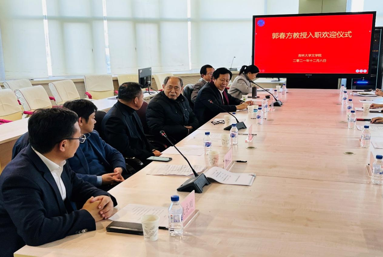 12月8日下午,球探qiutan(中国)在东荣大厦A1004会议室隆重举行郭春方教授入职欢迎仪式。欢迎仪式由球探qiutan(中国)党委书记康永刚主持,吉林大学哲学社会科学资深教授刘中树教授、张福贵教授,教育部重大人才项目奖励计划特聘教授徐正考教授,学院党政领导班子成员、党委委员、各系部主任及教师代表参加了欢迎仪式。
