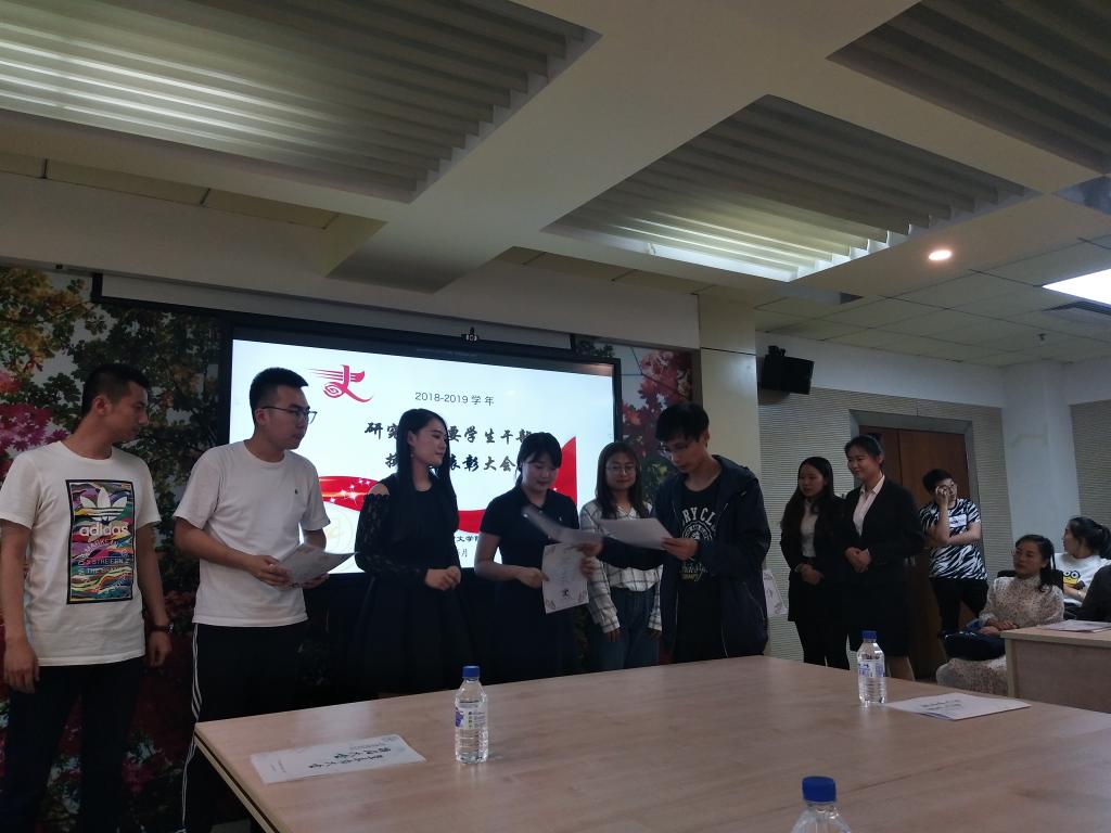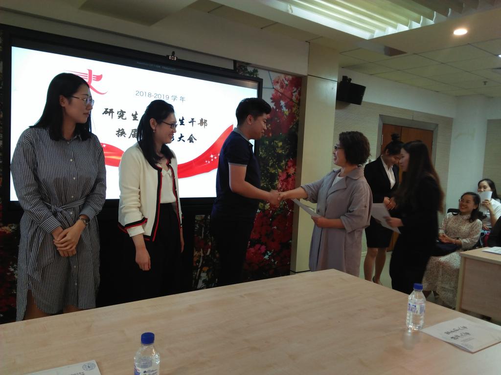 会议初始,由主持人宣读了“2017—2018年度优秀学生干部”名单,学院党委副书记郝淑媛老师为他们颁发了证书,感谢他们在过去一年里的付出与努力。随后,王林强老师宣布了新一届学生干部名单并颁发聘书,相信在他们的带领下我院研究生团学组织会愈加辉煌。