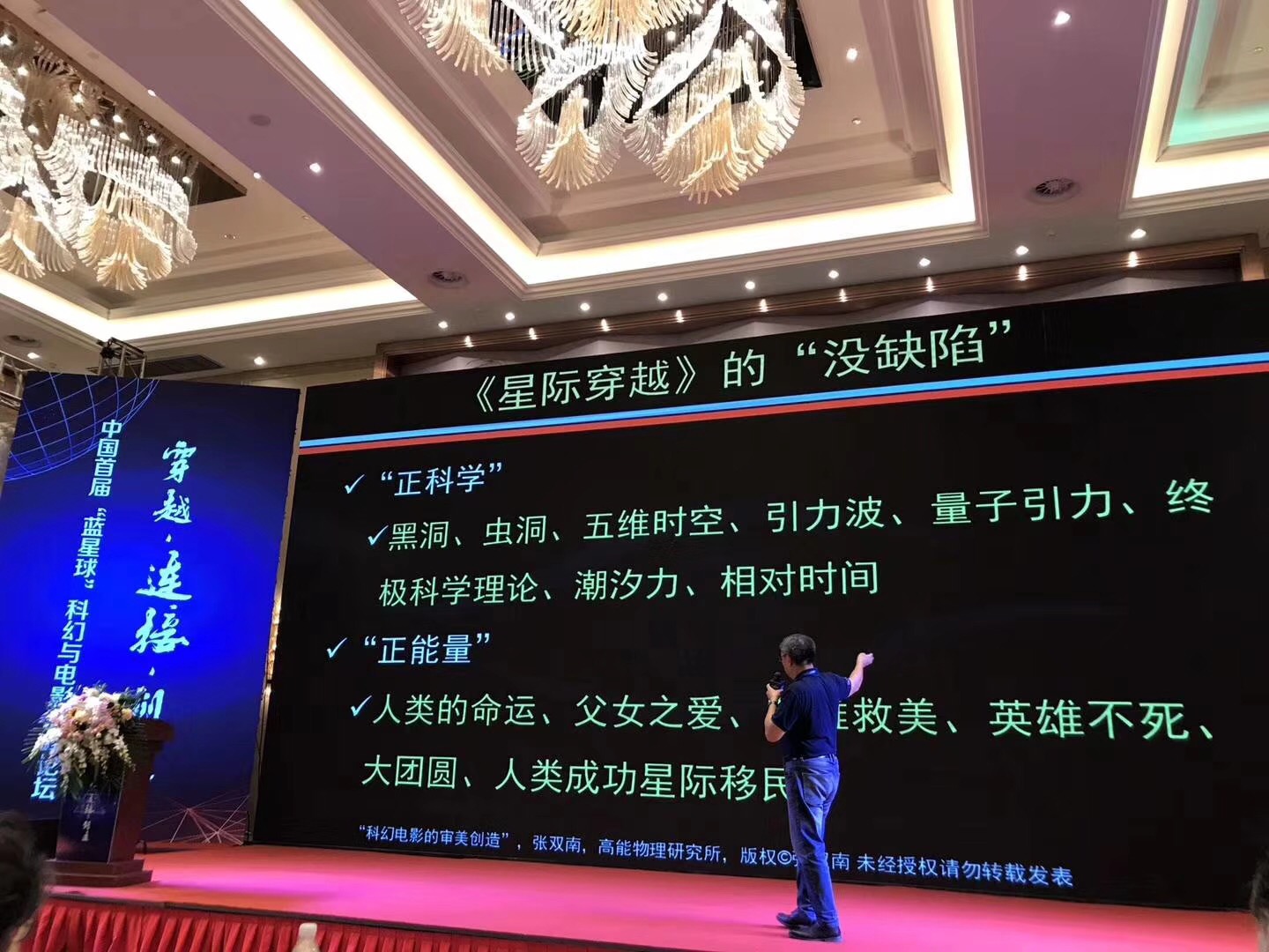 2018年9月2日上午,作为第十四届中国长春电影节重要组成部分之一的中国首届“蓝星球”科幻与电影高峰论坛圆满举办。球探网页版副院长孔朝蓬教授受邀出席了此次活动。论坛以“穿越、连接、创造”为主题,汇聚科学家、文学家与影视导演、制片人于一地,在论说与交流中从多个角度解读了科幻电影,实现了科学、文学与艺术的碰撞,是一场深刻的思想盛宴。