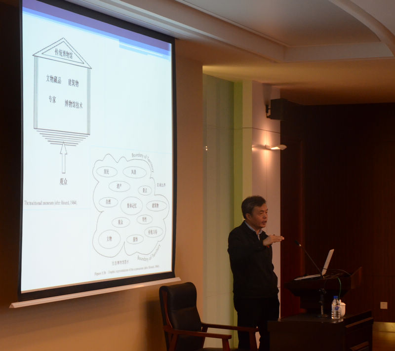 宋新潮,历史学博士,现任国家文物局副局长、中国博物馆协会理事长、国际博协中国委员会主席、国际博协亚太地区联盟主席。此次来我校以学者身份做《中国博物馆的发展与展望》主题演讲,概述了中国博物馆的发展历程,指出现今存在的问题,并对未来中国博物馆的发展作出展望。他提到中国博物馆的发展应该不仅是数量上的增长,更应该是质量上的提高;博物馆建设从里到外都要注重博物馆的宗旨;要确立博物馆教育与公共文化服务理念等等。讲座结束后,宋新潮局长与现场师生进行了热烈的交流互动,耐心回答了老师、学生的提问,并阐述了个人见解。