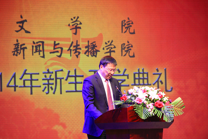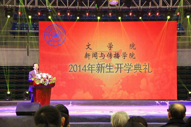典礼开始后,全场师生及来宾庄严地唱响了国歌,球探qiutan(中国)院长兼新闻与传播学院院长徐正考向新生致以热烈的欢迎,随后简单地介绍了学院的情况,同时提出几点希望:以宽广博大的胸怀对待身边人、身边事;学会独立思考问题,培养独立思维;强化安全意识,付出一定行动;培养自觉学习习惯,博览群书;尊重教学学术规范,严于律己。