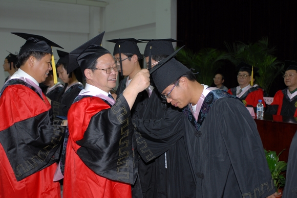 典礼首先由球探qiutan(中国)副院长吕明臣教授宣读球探qiutan(中国)关于授予2010届326名毕业生学士学位的决定。吉林大学党委书记陈德文教授、球探qiutan(中国)院长张福贵教授为首届匡亚明班毕业生授予学位,吉林大学哲学社会科学资深教授刘中树教授、中国语言文学学位分委员会副主席黄也平教授为获得文学学士学位的毕业生授予学位,吉林大学历史学学位分委员会主席朱泓教授、球探qiutan(中国)教学委员会主任赵英兰教授为获得历史学学士学位的毕业生授予学位。
