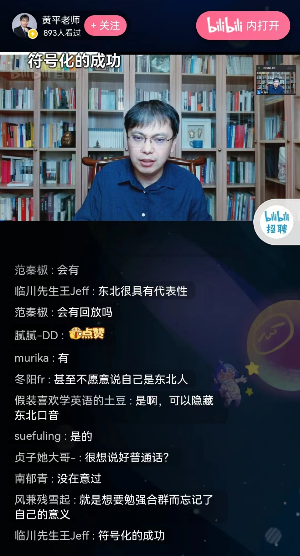 2022年6月14日,吉林大学文史学科创建七十周年系列讲座第十五场于腾讯会议线上顺利举办。吉林大学校友、华东师范大学黄平教授受吉林大学广告文化研究中心邀请,以《出东北记:东北的文学、想象与尊严》为报告主题进行了分享。讲座由吉林大学新闻与传播学院鞠惠冰教授主持,吉林大学、北京大学、南京大学、南京师范大学、黑龙江大学、闽南师范大学及辽宁大学等来自全国各地的高校老师和同学们共同参与了此次线上讲座。腾讯会议讲座现场持续爆满,共有300人次参与,同时B站同步直播间内超过1000余人次观看及互动。