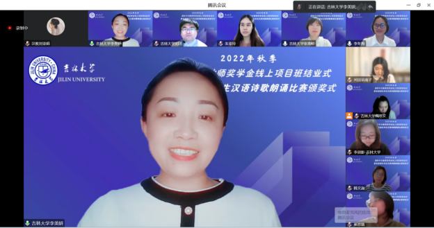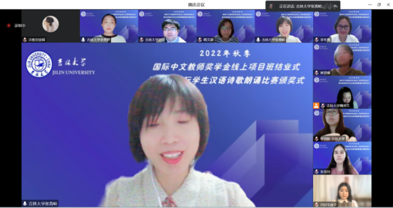 12月29日晚,2022 秋季“国际中文教师奖学金线上项目班结业式·暨首届国际学生汉语诗歌朗诵比赛的颁奖仪式”在网络平台顺利举行,来自日本、泰国的60余名学员及全体任课教师齐聚云端,共襄此次盛会。