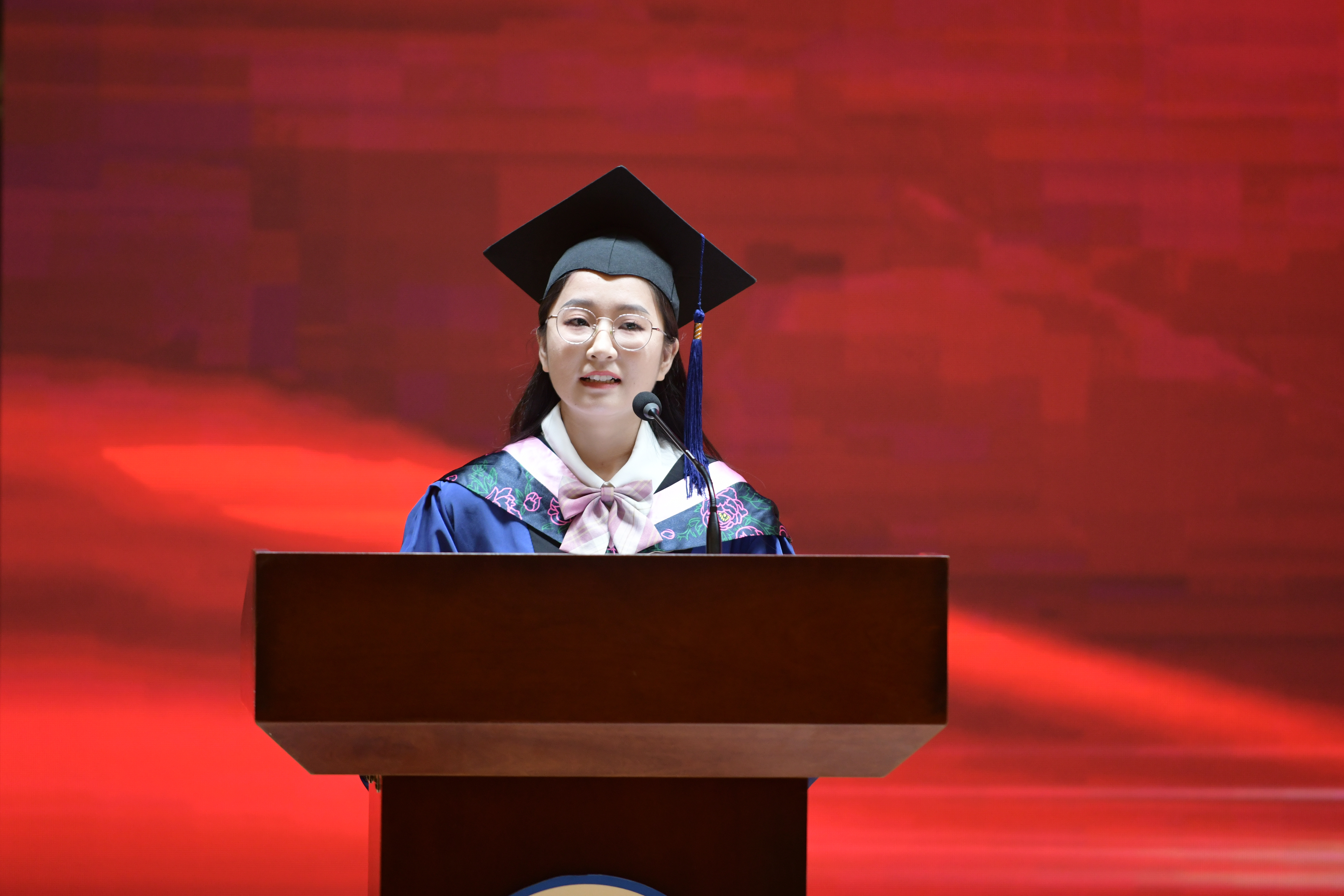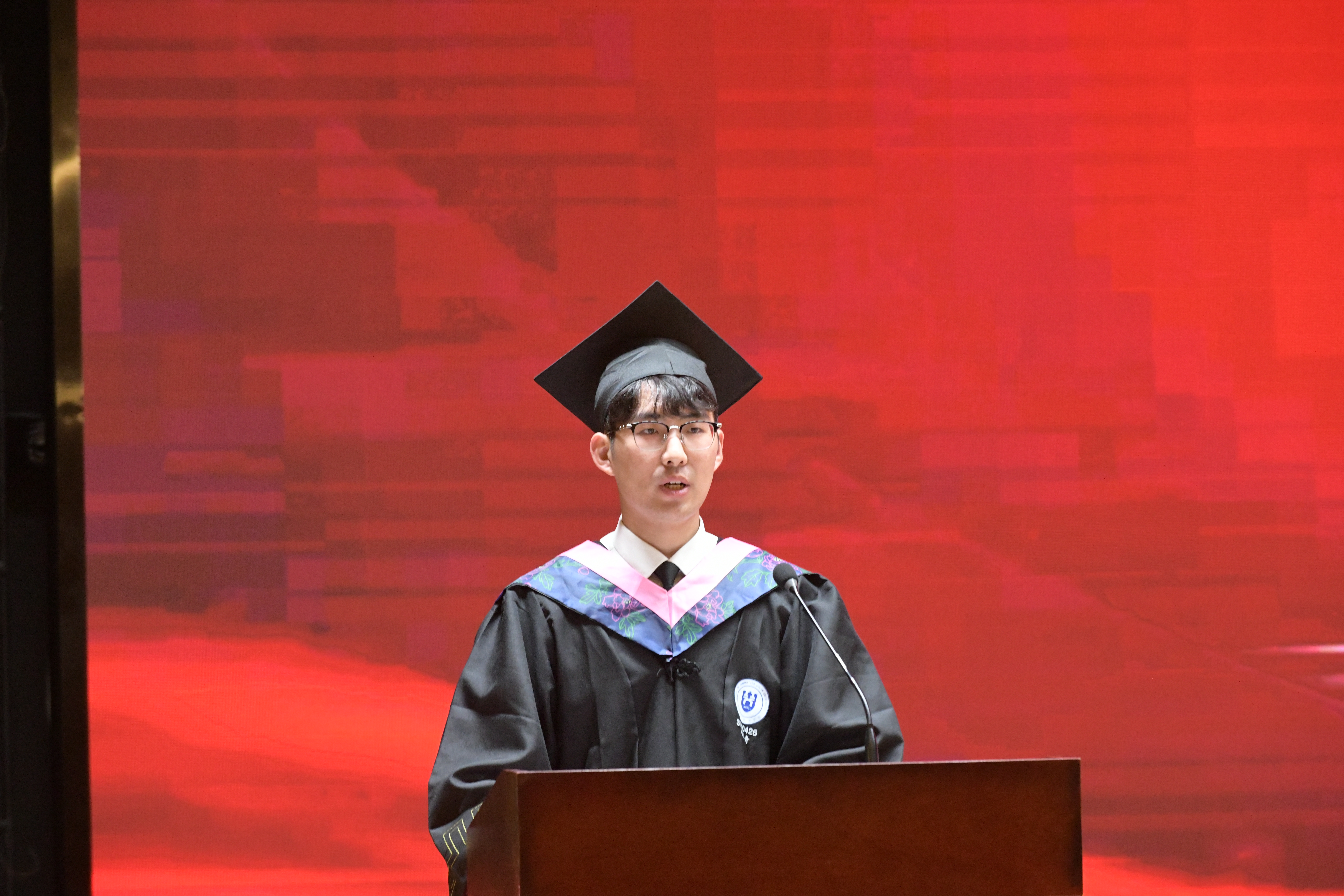毕业本科生代表、吉林大学第二十五届研究生支教团团长、院十佳大学生倪景奇同学,毕业研究生代表、吉林大学十佳硕士研究生田晓萌同学分别发言,表达了对于母校、母院的不舍,对恩师、同窗、家人的感谢以及未来将秉持吉大初心、传递文传力量的决心。随后,校优秀本科生班主任、中国史系王万志老师发言,王老师回顾了自己作为2019级本科生班主任与同学们共同成长的美好往事,并寄语毕业生们迈出校园后仍要坚持“三高”原则:一是高水平的专业追求,二是高效率的工作方法,三是高层次的人生追求,鼓励同学们把个人的追求融入到为人民服务的汪洋大海中,“直挂云帆济沧海”,在更高、更大的格局中实现恒久的人生价值!