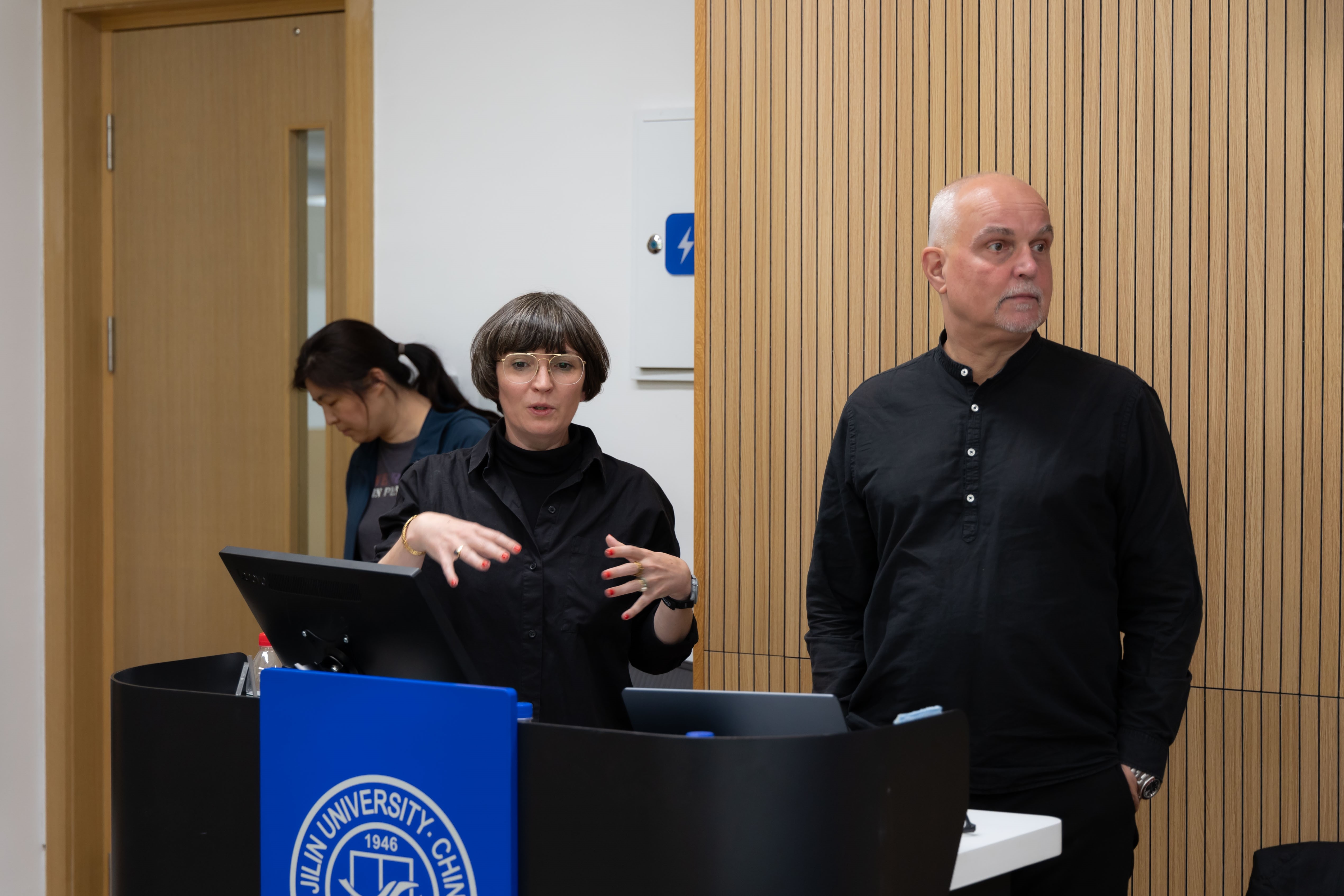 为庆祝吉林大学广告学创办三十周年,2023年9月21日至23日,吉林大学广告文化研究中心邀请到了魏玛包豪斯大学Markus Weisbeck教授和Vera Kunz教授在中心校区逸夫教学楼107教室举办”IMPROVISED EXPLORATION”创意工作坊。工作坊由吉林大学广告文化研究中心副主任王博学主持,吉林大学广告文化研究中心副教授许多澍、吉林大学广告文化研究中心副教授王志成、吉林大学广告文化研究中心讲师生琳一同参加活动。