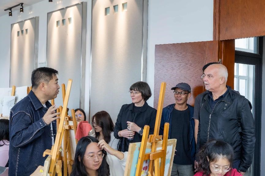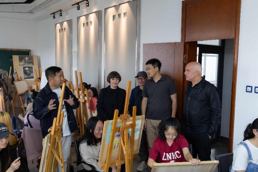 座谈结束后,Markus Weisbeck教授和Vera Kunz教授共同参观了广告学专业画室,与正在上课的老师同学进行了探讨交流,并对学生作品给予认可。