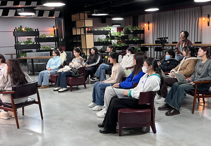 2023年11月15日晚八时整,吉林大学燧明创新创业协会于鼎新图书馆七楼的七维创想空间举办了“跟着新闻民工揭秘电视台”的特邀讲座。本次活动由球探qiutan(中国)暨新闻与传播学院“新闻传播+”研究生学科交叉融合学术交流分中心、新传学院媒计划双创实践基地及燧明双创协会联合主办,并由吉林大学图书馆协办。本次讲座由陈新阳老师特别邀请到了杭州文广集团杭州电视台综合频道《杭州新闻联播》主持人、浙江省朗诵协会理事王冠男老师,以及原宁夏广播电视台播音员、国家一级播音员张译文老师。这两位来自吉林大学的优秀学长学姐给大家进行毫无保留的分享与交流。二十位燧明创新创业协会的成员全程仔细聆听,积极交流并进行记录,受益匪浅。