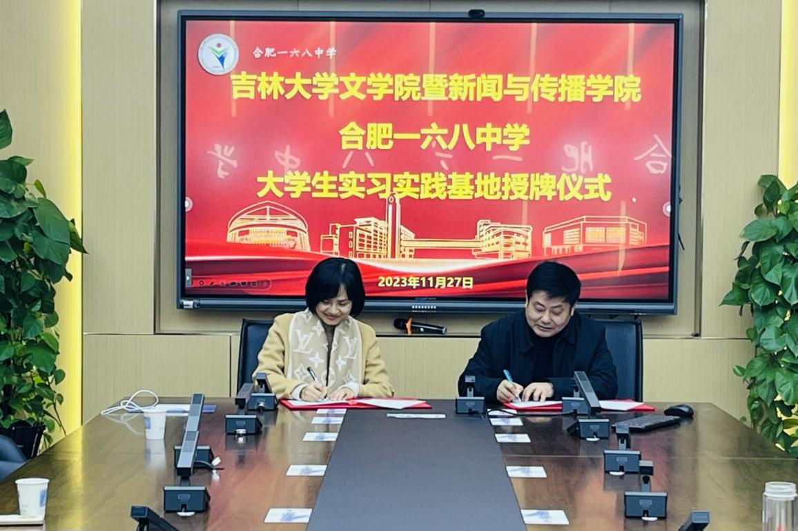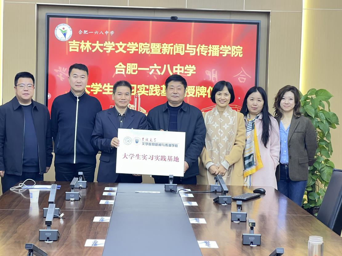 在合肥调研期间,球探qiutan(中国)暨新闻与传播学院副院长李冬梅代表学院,分别与合肥一六八中、安徽中广传播等单位,签订实习实践基地协议并授牌。