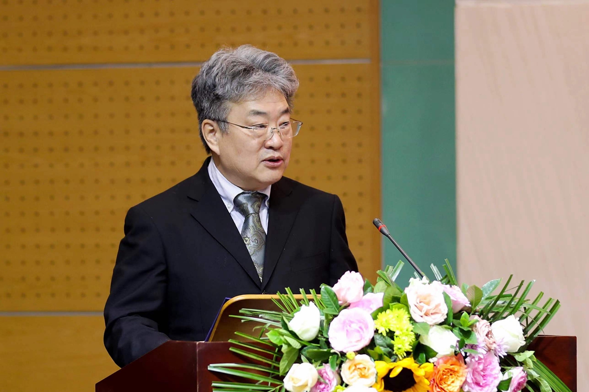 日本佛教大学文学部中国学科长、教授李冬木带来了校长伊藤真宏的美好祝愿,祝贺刘中树荣获中国现代文学学术贡献奖。贺词中,伊藤真宏称赞刘中树是中国学术界的重要人物,不仅在中国现代文学研究方面作出了巨大的学术贡献,而且培养了许多优秀的研究者。从担任吉林大学校长,日本佛教大学一直得到了吉林大学的大力支持、建议和帮助,期待在两校进一步开展密切的学术交流和文化交流。