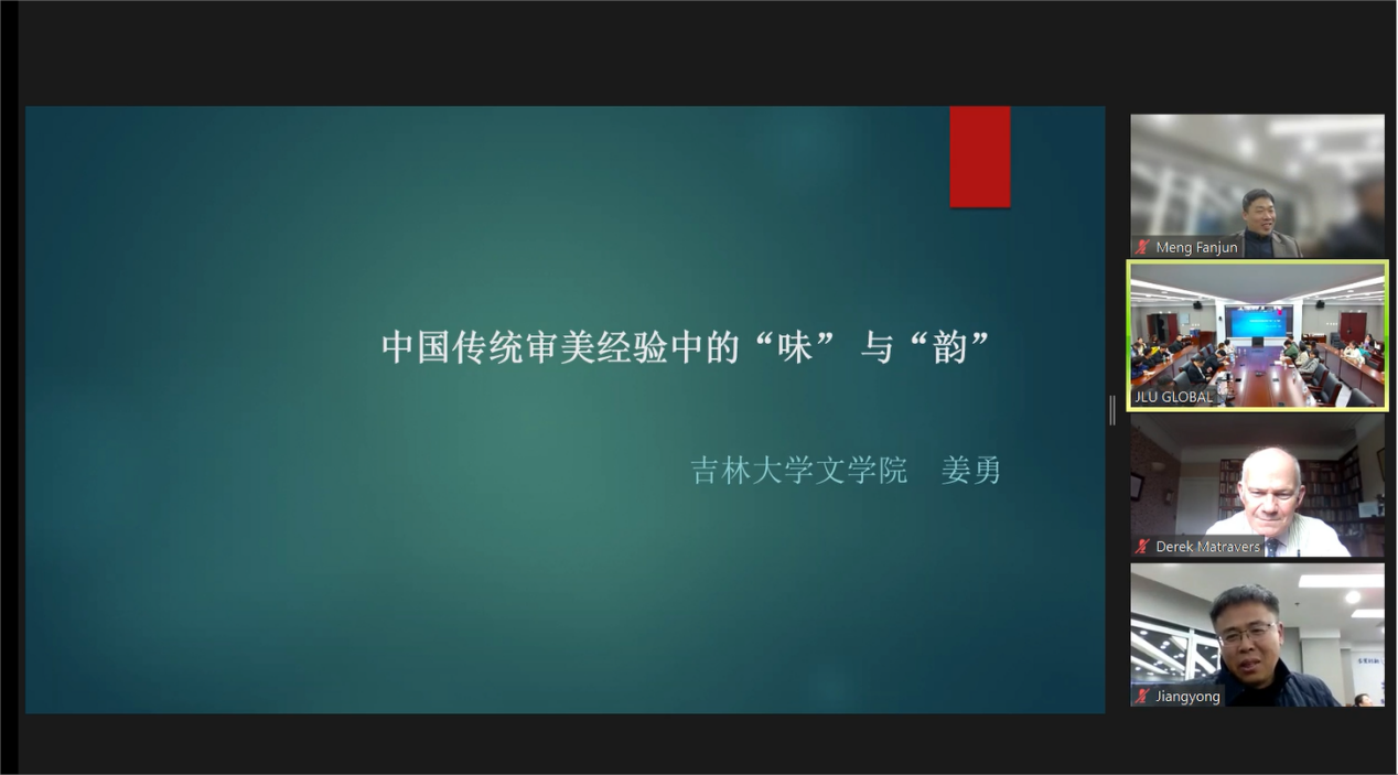 本次论坛主题为“当代美学中的‘趣味’问题”,特邀剑桥大学丘吉尔学院研究员、开放大学教授、《英国美学杂志》编辑Derek Matravers教授担任主讲嘉宾,球探网页版姜勇教授和梁玉水教授作为与谈人进行交流。三位学者共同在“趣味”的当代发展、中西比较、时尚文化多重视域中,探讨了“趣味”在审美判断中的作用和价值。吉林大学社会科学研究院院长曲红梅教授出席了本次论坛。论坛吸引了来自校内各个学院的青年教师、研究生、本科生四十余人。四位浙江大学当代美学博士参加了线上学习与研讨。吉林大学认知美学与美育研究中心副主任孟凡君副教授发起并主持了本次论坛。