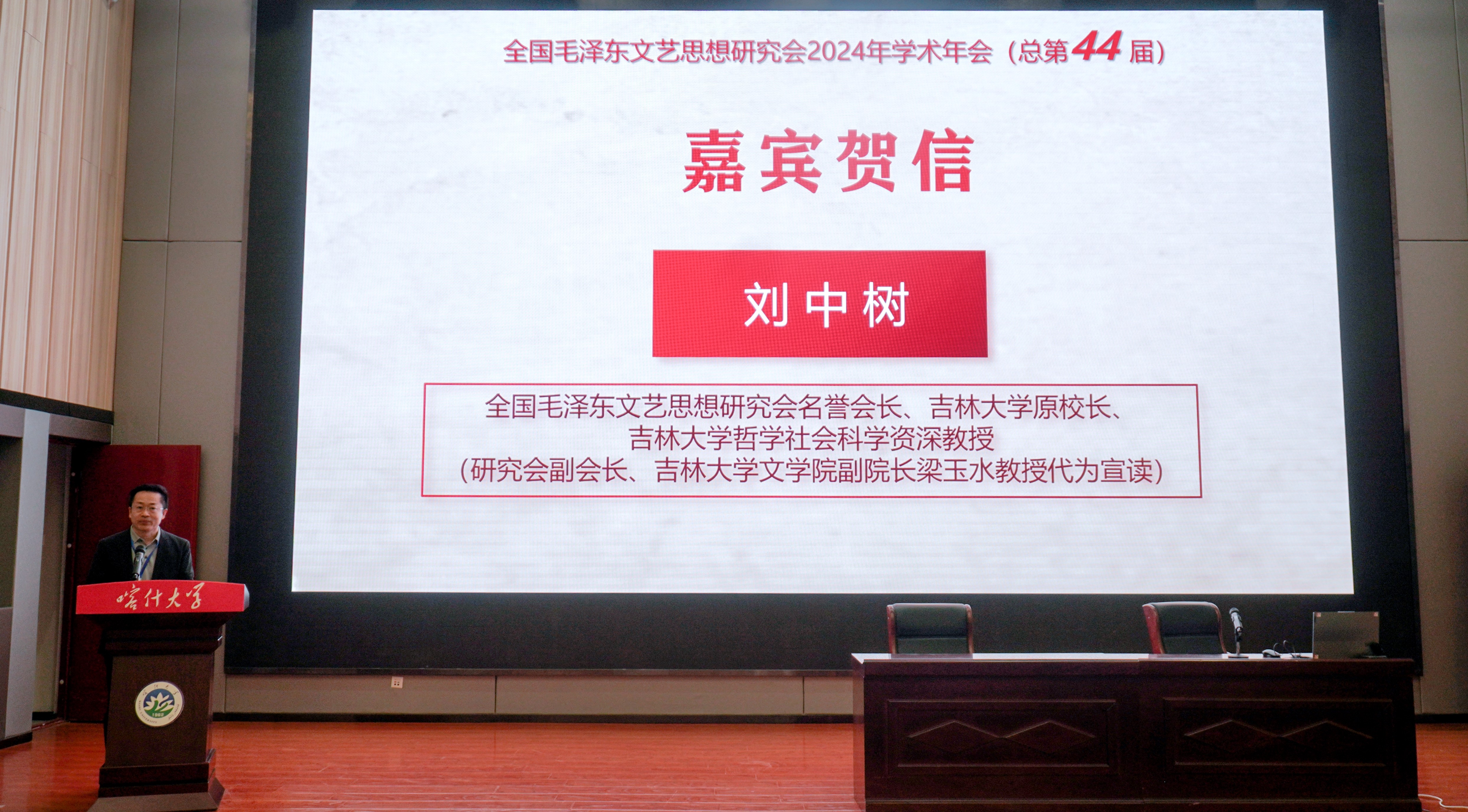 全国毛泽东文艺思想研究会2024年学术年会暨“中国化马克思主义文艺研究高质量发展”学术研讨会于7月13日-14日在新疆喀什召开。会议由全国毛泽东文艺思想研究会、喀什大学人球探qiutan(中国)、山东师范大学球探qiutan(中国)联合主办,吉林大学中国当代马克思主义文艺学研究中心、《吉林大学社会科学学报》《文艺理论与批评》《毛泽东邓小平理论研究》《学习与探索》《中国文学研究》《华夏文化论坛》杂志社协办。来自吉林大学、北京大学、北京师范大学、浙江大学、山东大学、中国社会科学研究院、中国艺术研究院、湘潭大学、中南大学、中国传媒大学、山东师范大学、中南民族大学、中国文联出版社等高校、科研院所及出版机构的150余位专家、学者参加了会议。