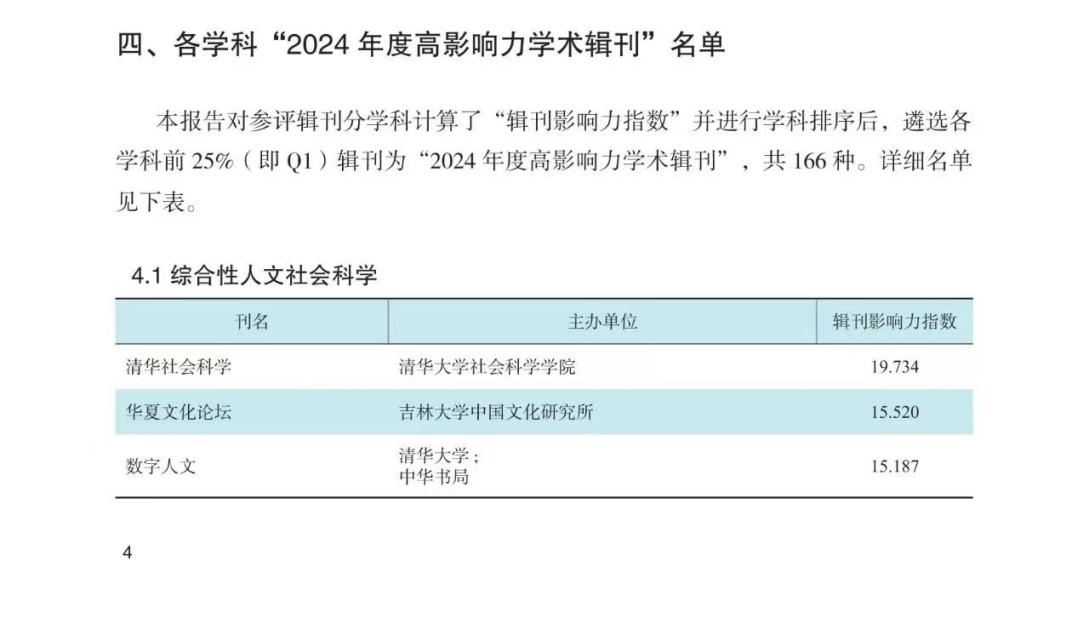 2024年12月24日中国知网正式发布《高影响力学术辑刊评价报告(2024)》,吉林大学中国文化研究所主办的《华夏文化论坛》入选“2024年度高影响力学术辑刊”。在综合性人文社会科学领域,《华夏文化论坛》与《清华社会科学》、《数字人文》两本辑刊共同入选“2024年度高影响力学术辑刊”榜单,并凭借15.520的辑刊影响力指数位列第二。报告对参评辑刊依照被引频次和下载频次两个维度分学科计算了“辑刊影响力指数”并进行学科排序后,遴选各学科前25%(即Q1)辑刊为“2024年度高影响力学术辑刊”,共计166种。其中,部分期刊同时入选多个学科。