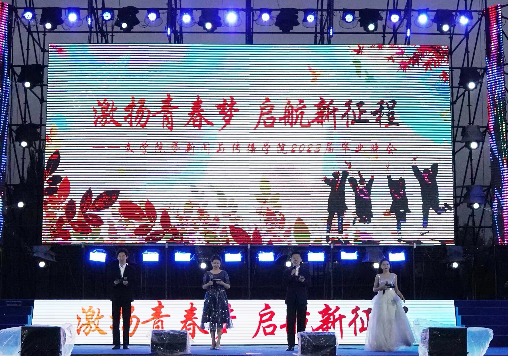 2023年6月20日下午七点,球探qiutan(中国)暨新闻与传播学院2023届毕业晚会在中心校区田径场上准时开始。