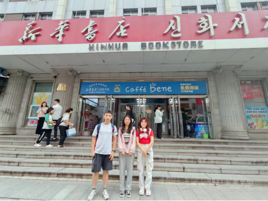 第一组成员邵致远、王梦涵、王玥彤来到延吉市新华书店与延吉市图书馆,以书籍为切口,对工作人员与顾客进行采访,进一步深入挖掘延边朝鲜族自治州地区的双语现象背后产生的社会问题,为团队寻找更适合延边地区的推普方案提供了强大的理论支撑。第二组成员窦雅琪、陈以欢、于禄雨、梁斯淇前往当地郊区,挖掘朝鲜语使用的分区性和断代性等特征,同时前往延吉市博物馆进行参观,通过历史知识的具象化表现,深入探寻当地朝鲜语的生长与发展足迹。第三组成员李裕萱、赵航、刘禹瑶前往延吉市第三中学、第十二中学等中小学,坚持“推广普通话,从娃娃抓起“,发放团队制作的普通话相关海报与文创产品,与当地学生进行普通话趣味互动,寓教于乐,让同学们在收获快乐的同时也能收获知识。团队选取少年宫作为宣讲地点,围绕少年宫的课程设置展开宣讲。