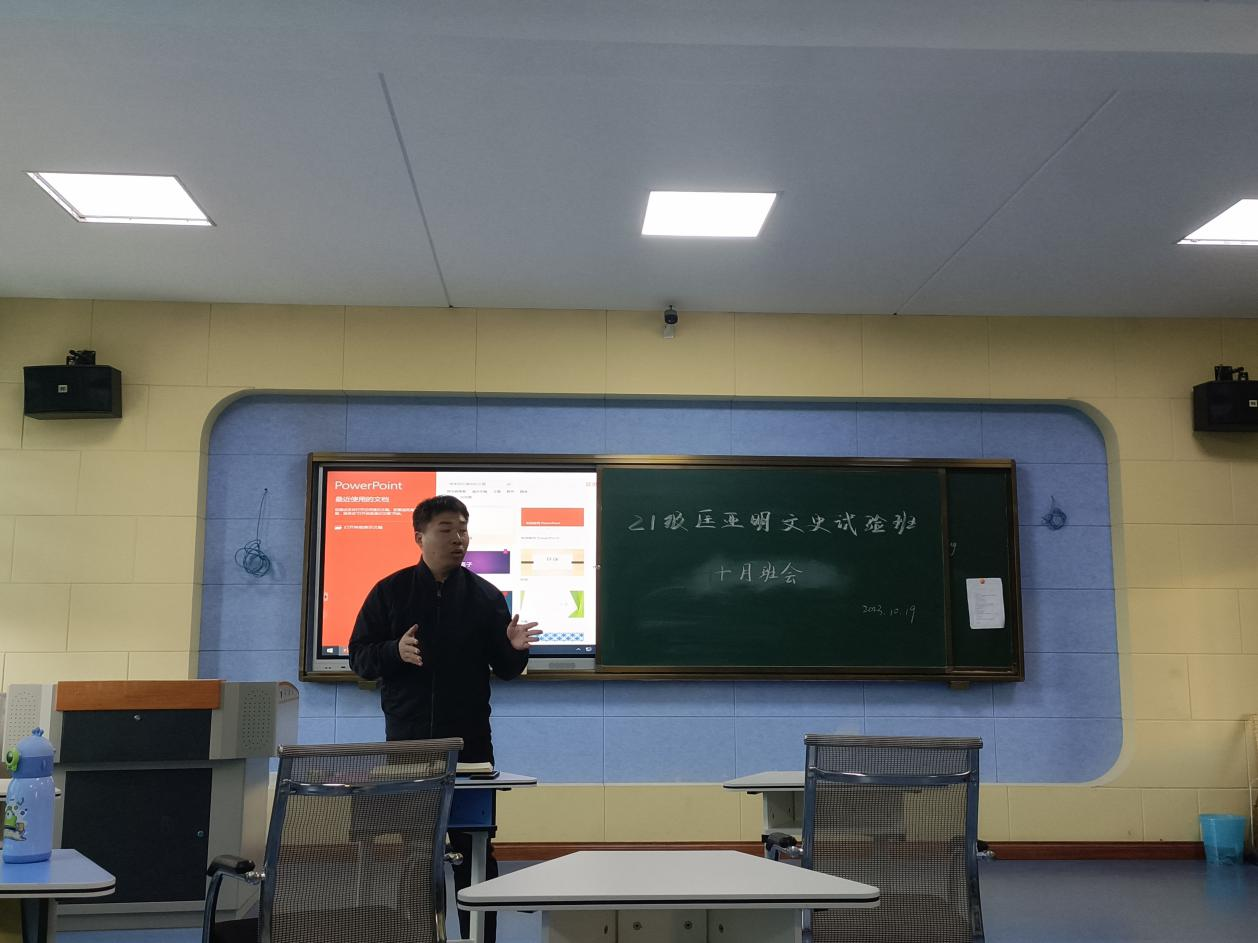 2023年10月23日,球探qiutan(中国)21级历史学专业于萃文楼第一阶梯教室开展10月主题班会,班会由班主任陶莎老师、班长袁仁斌同学主持。在班会上,陶莎老师首先向同学们简要了解同学们的学习和日常生活情况,解答了同学们关于论文写作的相关疑问,并分享了文献综述检索和写作的方法与技巧。随后杨佳欣老师面向本班同学们简要介绍了未来学业规划和职业规划的必要性和意义,提醒同学们对学业以及毕业去向做出相应的规划。最后陶莎老师引导同学们关注国家思想文化领域的各项方针政策,学习习近平新时代中国特色社会主义思想,树立坚定的理想信念。