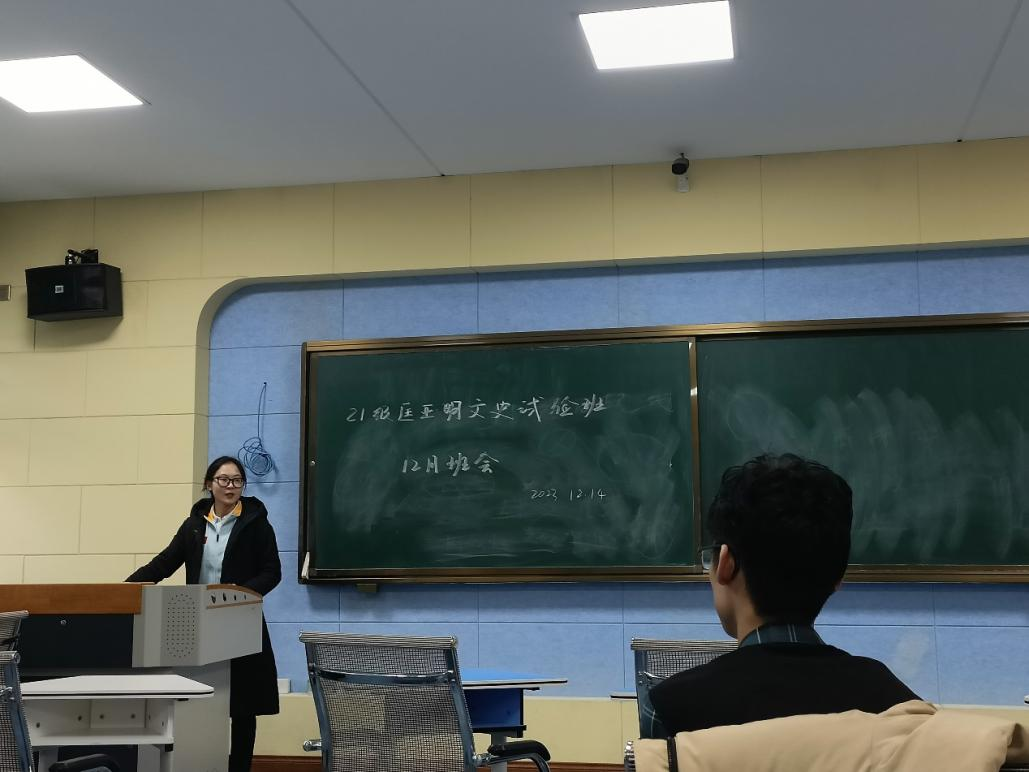 2023年12月11日至12月14日,球探qiutan(中国)暨新闻与传播学院2021级11月各专业主题班会由辅导员杨佳欣老师组织召开。历史学专业于萃文楼第一阶梯召开班会。班会首先进行班委述职,以班长袁仁斌与团支书尹婷为代表,向同学们汇报集体与个人年度工作情况。在杨佳欣老师和团支书尹婷同学的组织下,班级同学以线上调查问卷方式进行对全体班委民主测评和入党积极分子线上民主测评。各项民主测评完成后,杨佳欣老师进行期末月备考动员,鼓励同学们积极备考,指出即使本学期考试任务较轻,也不能因此产生懈怠心理或放松警惕。同时,老师着重强调考风考纪,提醒同学们诚信考试。并提到要合理规划假期生活,为考研、保研或就业做好提前准备。