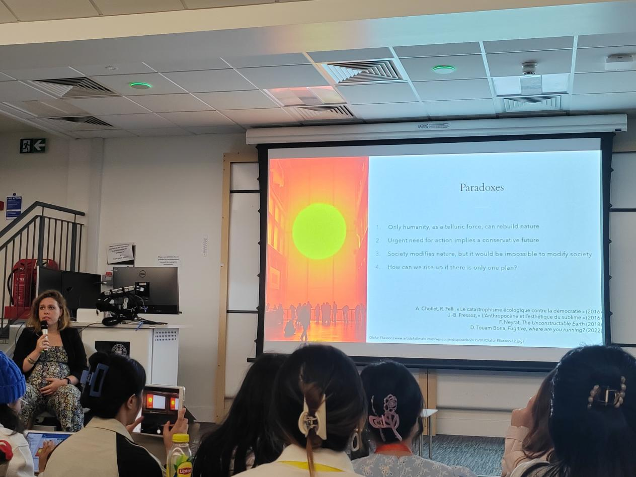 Justine Feyereisen教授将具体的“乌托邦”概念与“生态圈”概念进行对话,在《南方想象中的乌托邦和交错带概念化》(Conceptualizing Utopia and Ecotone in Southern Imagining)学术讲座中思考灾难年代,介绍德国哲学家Ernst Bloch的乌托邦概念,乌托邦不是投射,也不是理想化,而是对过去、剥削、痛苦和异化的再现。Edouard Glissant在他的小说Tout-monde中借鉴生态圈作为社会共享空间呈现务实的乌托邦主义,也借鉴群岛的关系空间,探讨民族国家的模式。