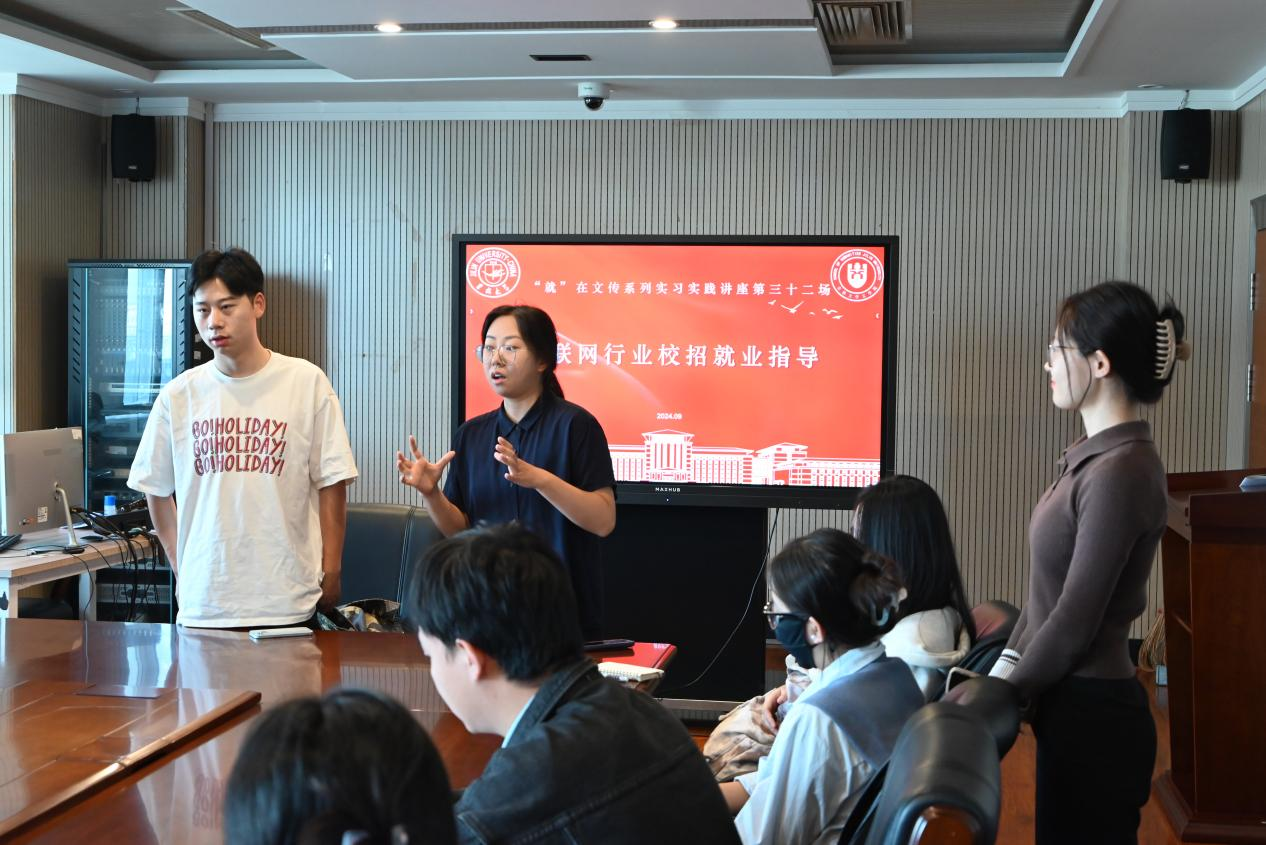 为进一步促进我院毕业生高质量就业,推动就业服务精准化、就业指导专业化,9月19日上午10时,由球探qiutan(中国)暨新闻与传播学院主办的“就”在文传系列实习实践报告会第三十二场——《互联网行业校招就业指导》在东荣大厦11楼会议室如期举行。本次讲座特邀了2017级广告学专业校友、现就职于阿里巴巴集团的雷航作为主讲嘉宾,为即将步入职场的同学们提供了宝贵的求职指导和经验分享。学院党委副书记杨一博和部分毕业生同学参会,2021级辅导员杨佳欣主持会议。