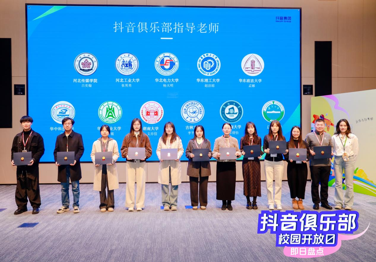 校园开放日当天,老师们参观了企业文化展厅,在抖音校园业务负责人的讲述中了解企业发展历程及企业文化。在讲述中,负责人向老师们介绍了企业亮点工作及未来合作计划,就“点亮校园生态”“校园文化活动共创”等话题与老师们开展互动交流,并邀请老师们写下在未来合作中对抖音校园的期待。在导师仪式环节中,抖音校园向我院教师颁发指导教师证书并合影留念。