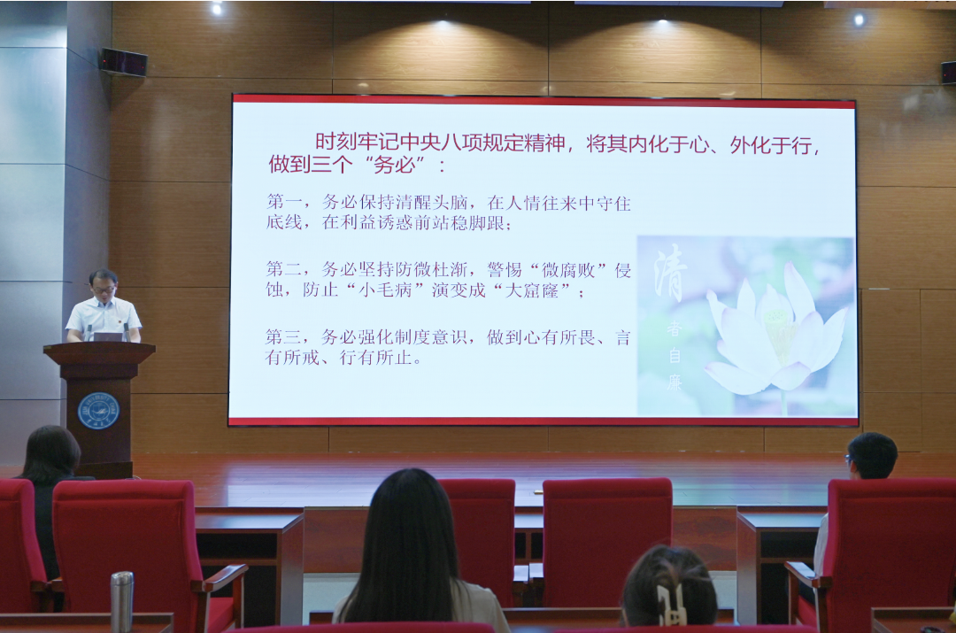 为深入贯彻中央八项规定精神学习教育,强化党员理论武装、坚定党员理想信念、增强党员党性修养,引导即将毕业的青年党员继承和发扬党的优良作风,永葆党员先锋模范作用,2025年6月16日上午,球探qiutan(中国)党委书记霍志刚在国际学术大讲堂为学院全体本科毕业生党员讲授毕业前“最后一次党课”。学院党委副书记兼副院长葛宗梅、本科毕业年级辅导员杨佳欣、全体毕业生党员参加。