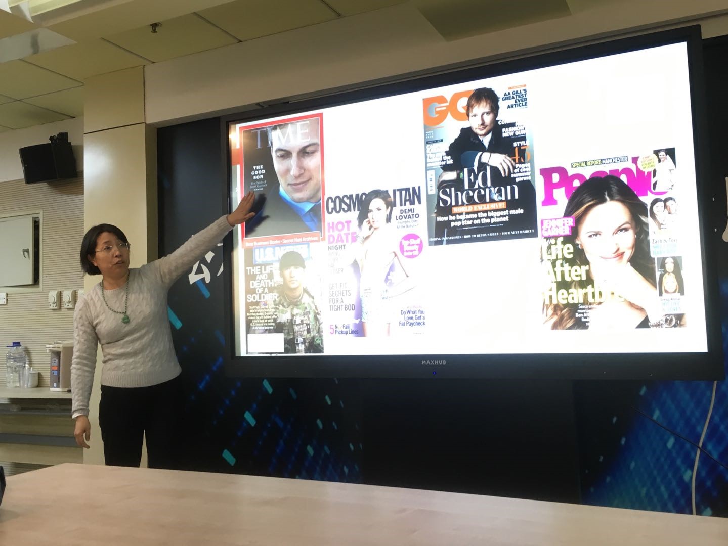 讲座正式开始前,才晓梅老师介绍了自己的求学经历和研究方向,明确了本场讲座的重点内容,表示内容分析的基础就在于要说服读者这项研究是有意义的。讲座开始,才老师提问大家:以大家的理解,什么是内容分析?可以对什么进行内容分析?接下来,才老师展示了丰富的案例,包括美国杂志封面标题、中美杂志对比、纽约时报的中英版对比、博客、Captain Marvel预告视频等,在主题、受众、内容等方面提出了很多具有创新性的研究点,为老师和同学们展开了内容分析方面的思路。