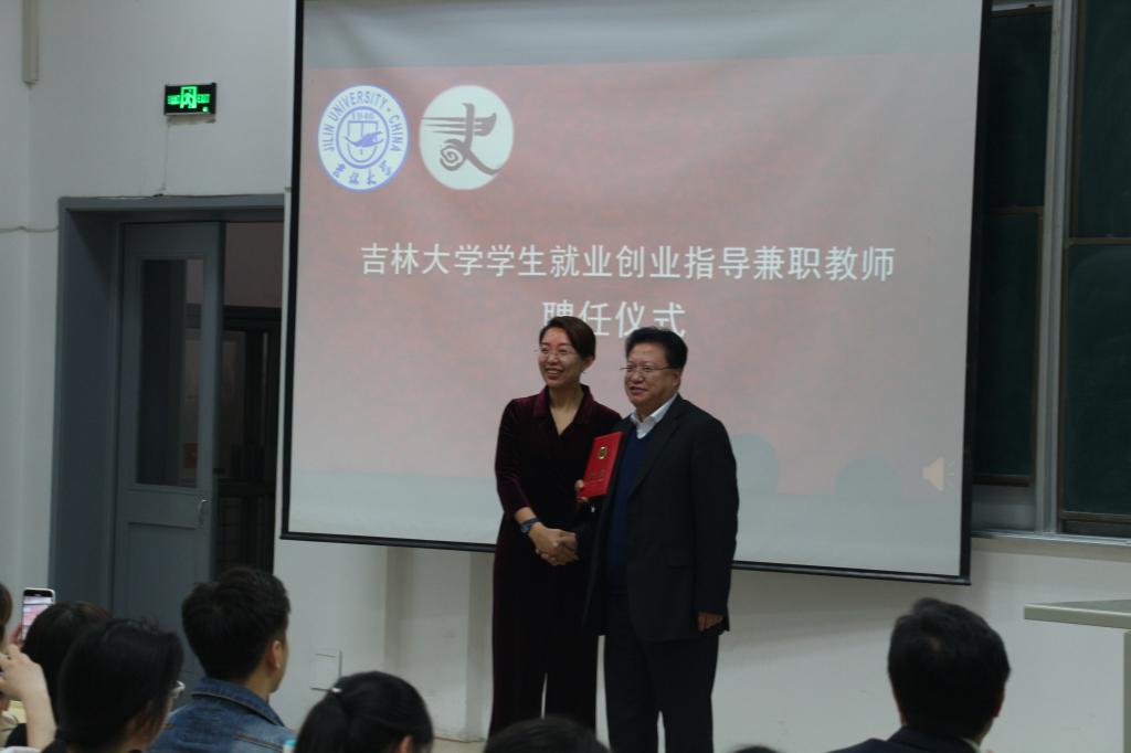 4月17日下午六点,天气虽然阴沉并伴随着小雨,但是逸夫楼16阶梯教室仍是座无虚席,吉大校友顾斐老师的第二场讲座《年轻就业群体职业生涯规划及创业项目指导》在这里举行。莅临现场的有吉林大学学生就业创业指导与服务中心主任钟新老师,吉林大学学生就业创业指导与服务中心科长孙卓老师,球探qiutan(中国)党委书记康永刚老师,球探qiutan(中国)党委副书记郝淑媛老师,球探qiutan(中国)学生工作办公室主任杨一博老师,球探qiutan(中国)研究生办公室王林强老师,球探qiutan(中国)学生办公室李芊满老师,现场还聘请顾斐老师为吉林大学学生就业创业指导兼职教师。