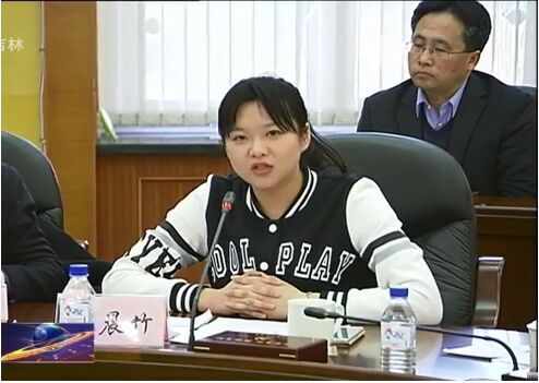 图4:吉大新闻与传播学院硕士研究生赵晨竹在省委宣传部座谈会上发言。