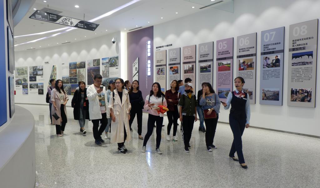 图3:师生党员在规划馆内随讲解员参观。
