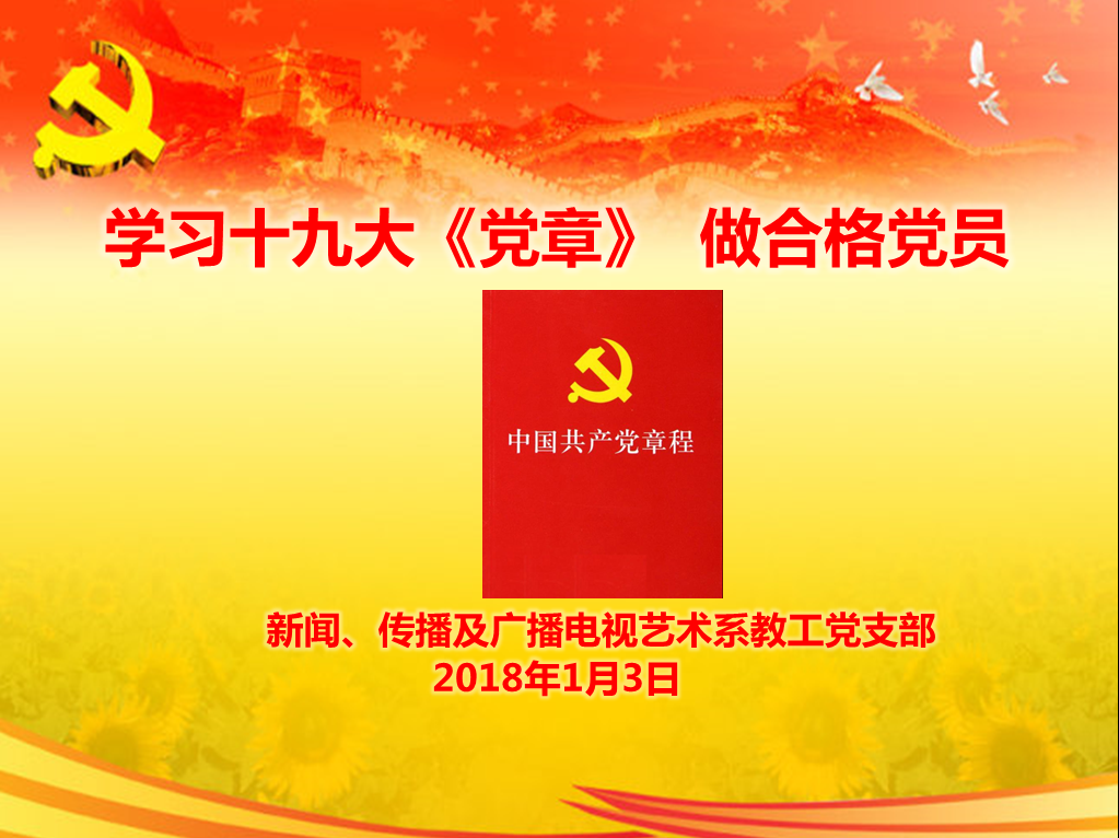 本网消息 1月3日下午,球探qiutan(中国)新闻、传播及广播电视艺术系教工党支部在东荣大厦10楼会议室进行十九大精神专题学习,由支部书记严俊教授为支部全体党员上了一堂题为《学习十九大〈党章〉 做合格党员》的党课。