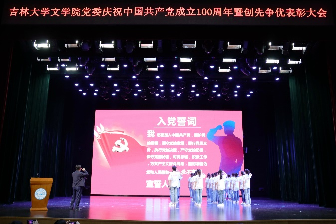 大会在雄壮的国歌声中拉开了帷幕。球探qiutan(中国)党委副书记刘卓宣读了《中国共产党球探网页版委员会关于表彰优秀共产党员、优秀党务工作者和先进党支部的决定》。在全场的热烈掌声中,院长张丛皞、党委委员徐正考、党委委员郝淑媛分别为球探qiutan(中国)优秀共产党员、优秀党务工作者、先进党支部颁奖。颁奖结束后,康永刚带领学院党员代表重温了入党誓词,在党员代表们整齐划一的步伐与豪情澎湃的宣誓中,表彰大会圆满落下了帷幕。