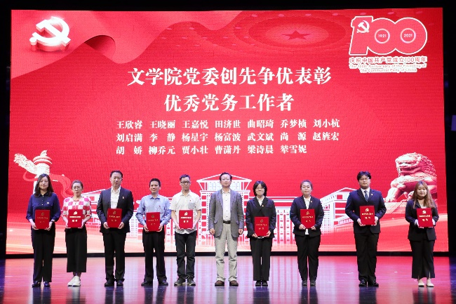 表彰大会后,师生共同观看了庆祝建党100周年音诗话晚会,本次晚会设计巧妙,采用倒叙方式将我党发展变革的百载岁月划分为建功立业新时代、改革开放换新篇、开天辟地新中国、燎原之火燃东方以及尾章五个篇章,17个节目融合音乐、舞蹈、诗歌、话剧、配音、朗诵等多种形式,。晚会现场掌声如潮,有温情、有热泪,讴歌了百年辉煌党史,突出表达着共贺党诞百年的主题