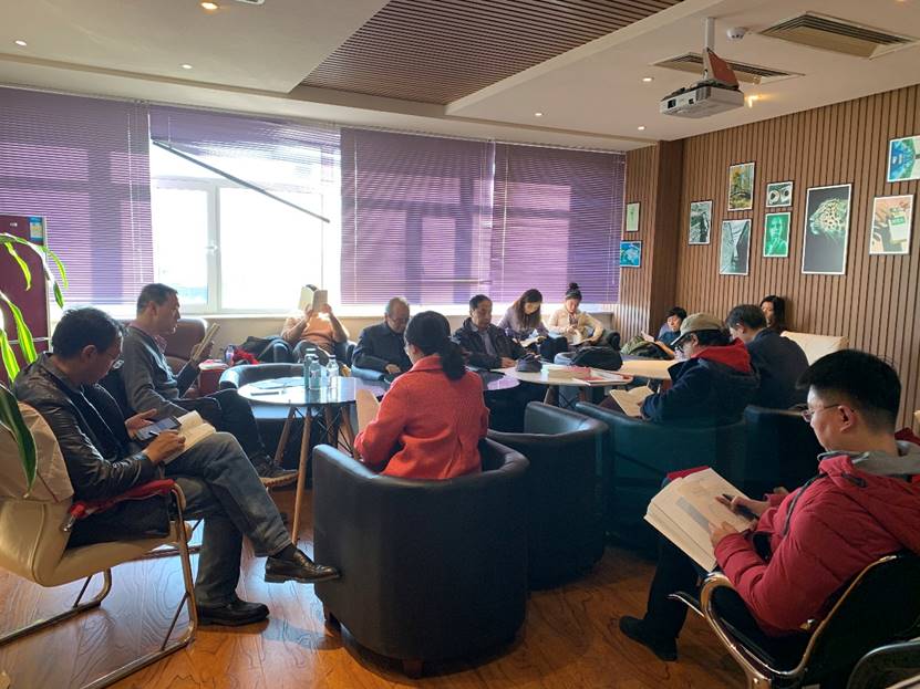 本网消息 11月7日下午,在“清扫落叶,美丽校园”志愿活动结束后,球探qiutan(中国)新闻、传播及广播电视艺术系暨吉林省传播学会教工联合支部在东荣大厦10楼教师活动中心开展“不忘初心、牢记使命”主题教育第四次集中学习,支部书记严俊教授带领大家认真学习《习近平关于“不忘初心、牢记使命”论述摘编》中“把政治建设摆在首位,不断增强‘四个意识’、坚定‘四个自信’、做到‘两个维护’”、“坚持以人民为中心,把群众路线深深植根于思想中、具体落实到行动上”两部分内容。