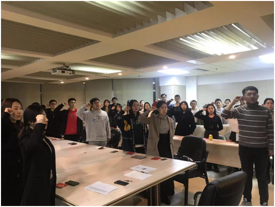 随后,为贯彻落实本科生党支部的“不忘初心,牢记使命”主题教育实施方案,响应“七个一”中“重温一次入党誓词”,由曲昭琦领誓,球探qiutan(中国)本科生第一、第二党支部全体党员同志一同重温入党誓词,全体党员同志面对入党誓词再次庄严宣誓,回顾自己之前的不足,向优秀的党员同志学习,通过不断努力完善自我。