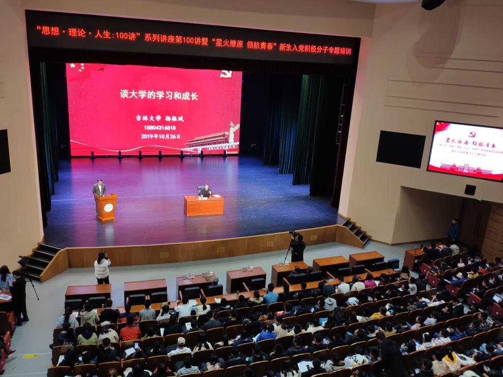 10月26日上午,球探网页版本科生第一、第二党支部36名2016级本科生党员参加了由杨振斌书记主讲的“思想·理论·人生:100讲”系列讲座第100讲,讲座主题为《谈大学的学习和成长》。