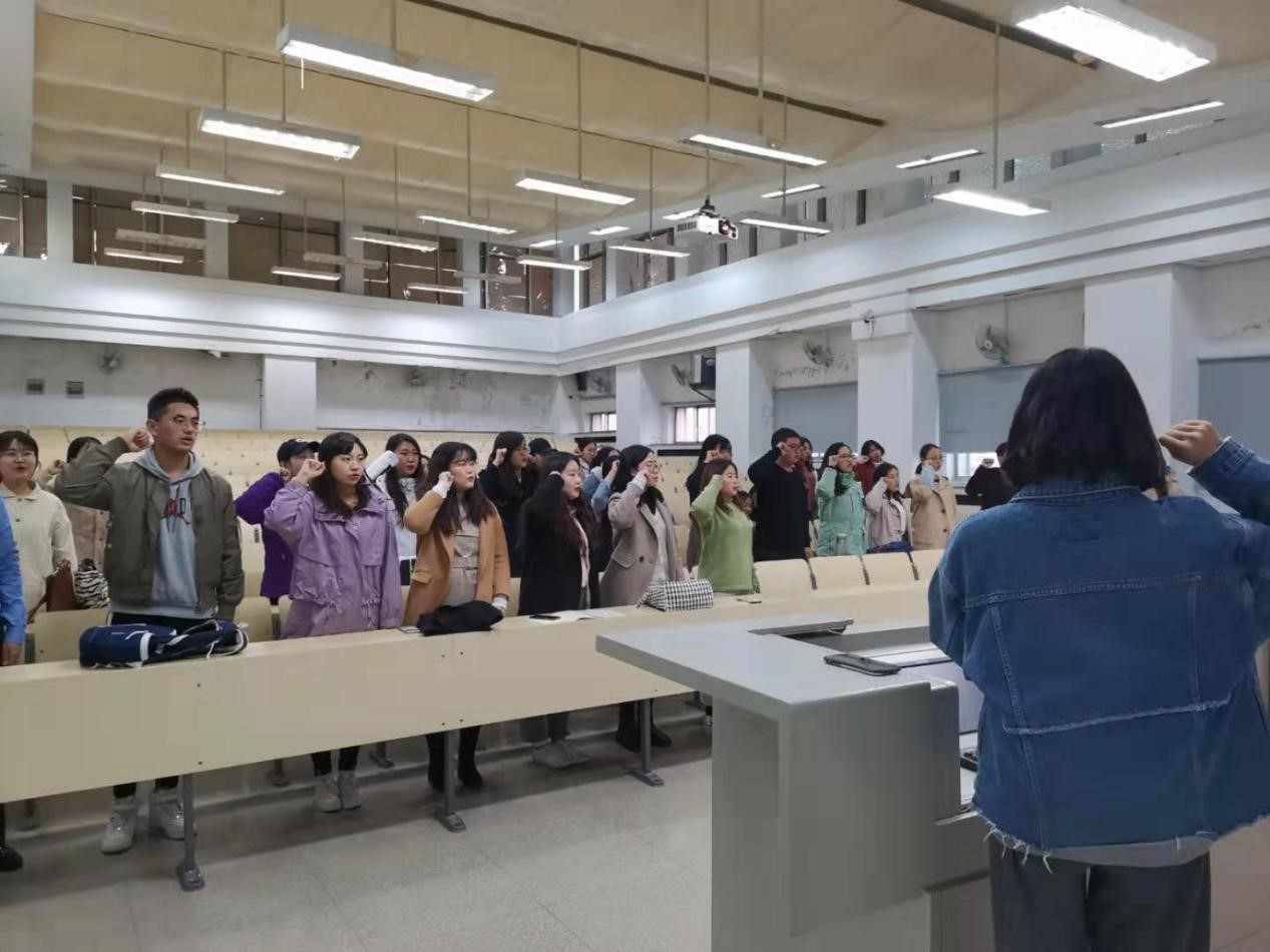 10月12日,球探网页版2019级第一、第三党支部在逸夫楼第十六阶梯教室举行了“不忘初心、牢记使命”主题教育特色系列活动之“永葆初心”——重温入党誓词活动。在第一支部党支书柳乔元的主持下,面对鲜红的党旗,全体党员庄严地举起右手,郑重宣誓。